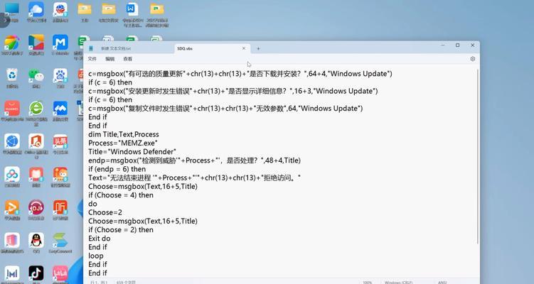 在现代社会中,电脑已经成为我们生活中不可或缺的一部分。然而,偶尔我们会遇到电脑出现蓝屏的情况,其中一个可能的原因是VBS“我是猪”代码。本文将深入探究这一问题,为读者揭示VBS“我是猪”代码的威力以及解决电脑蓝屏问题的方法。
